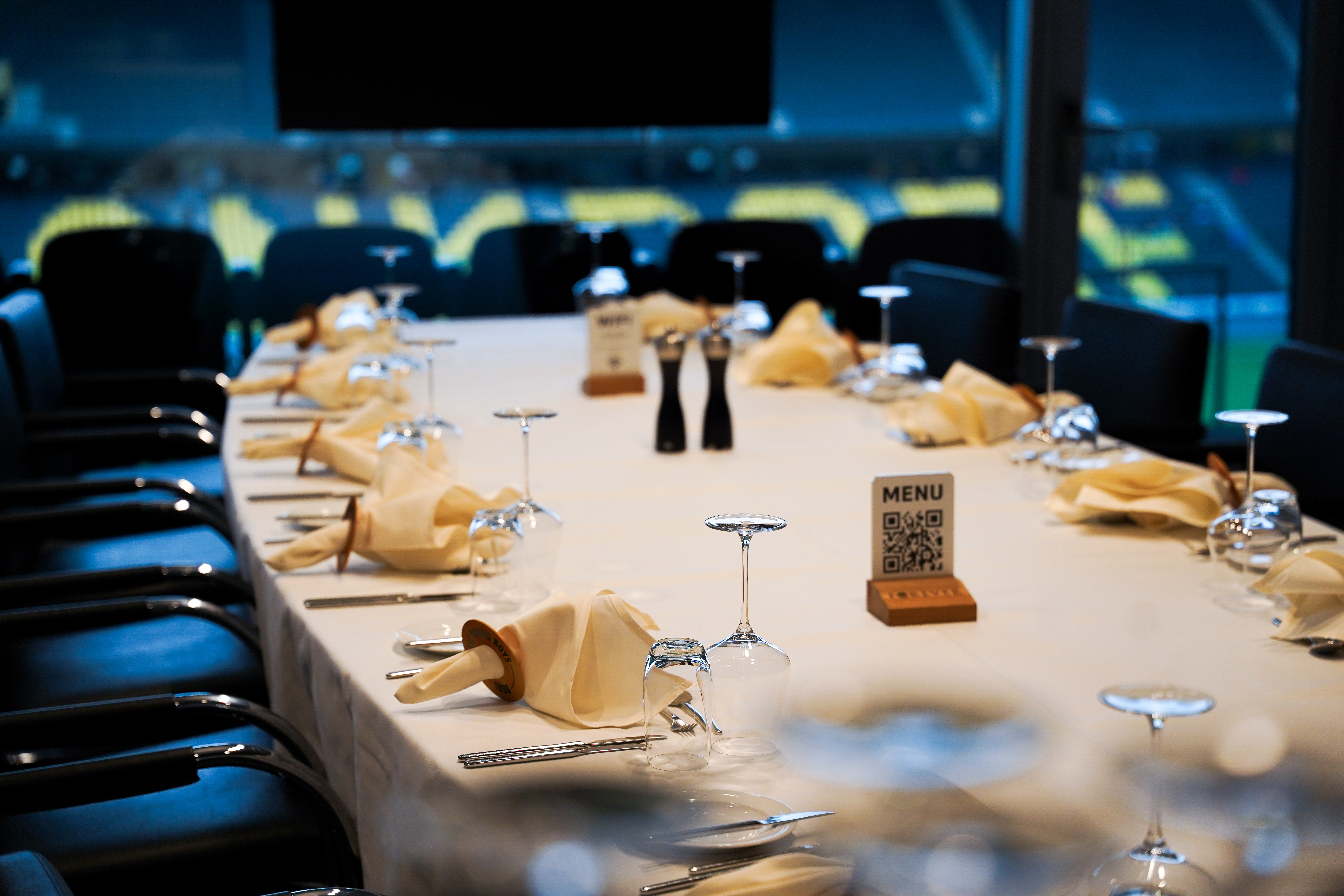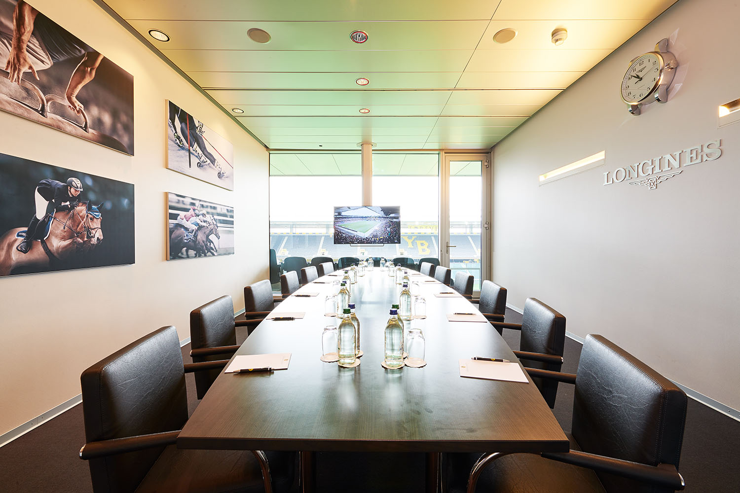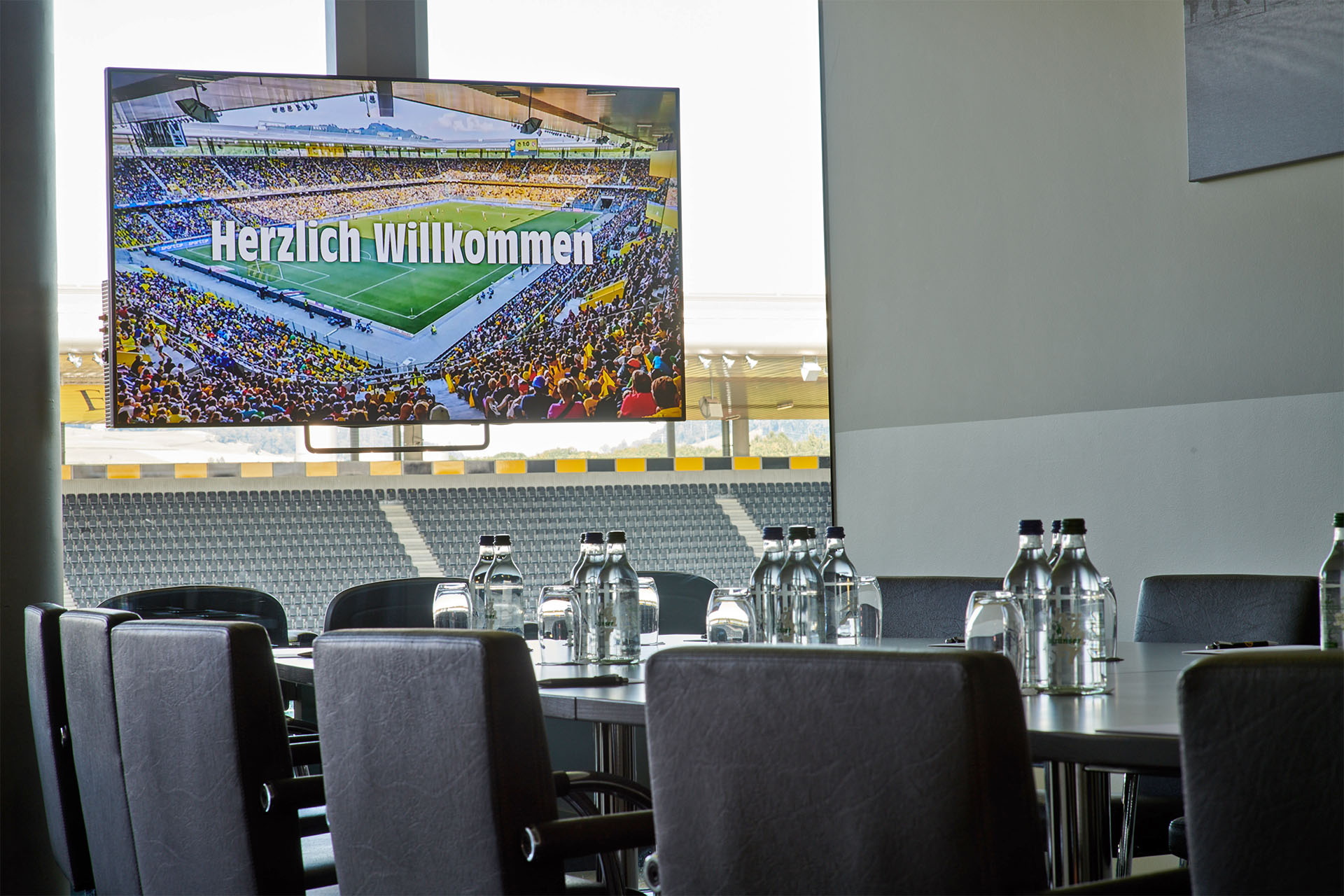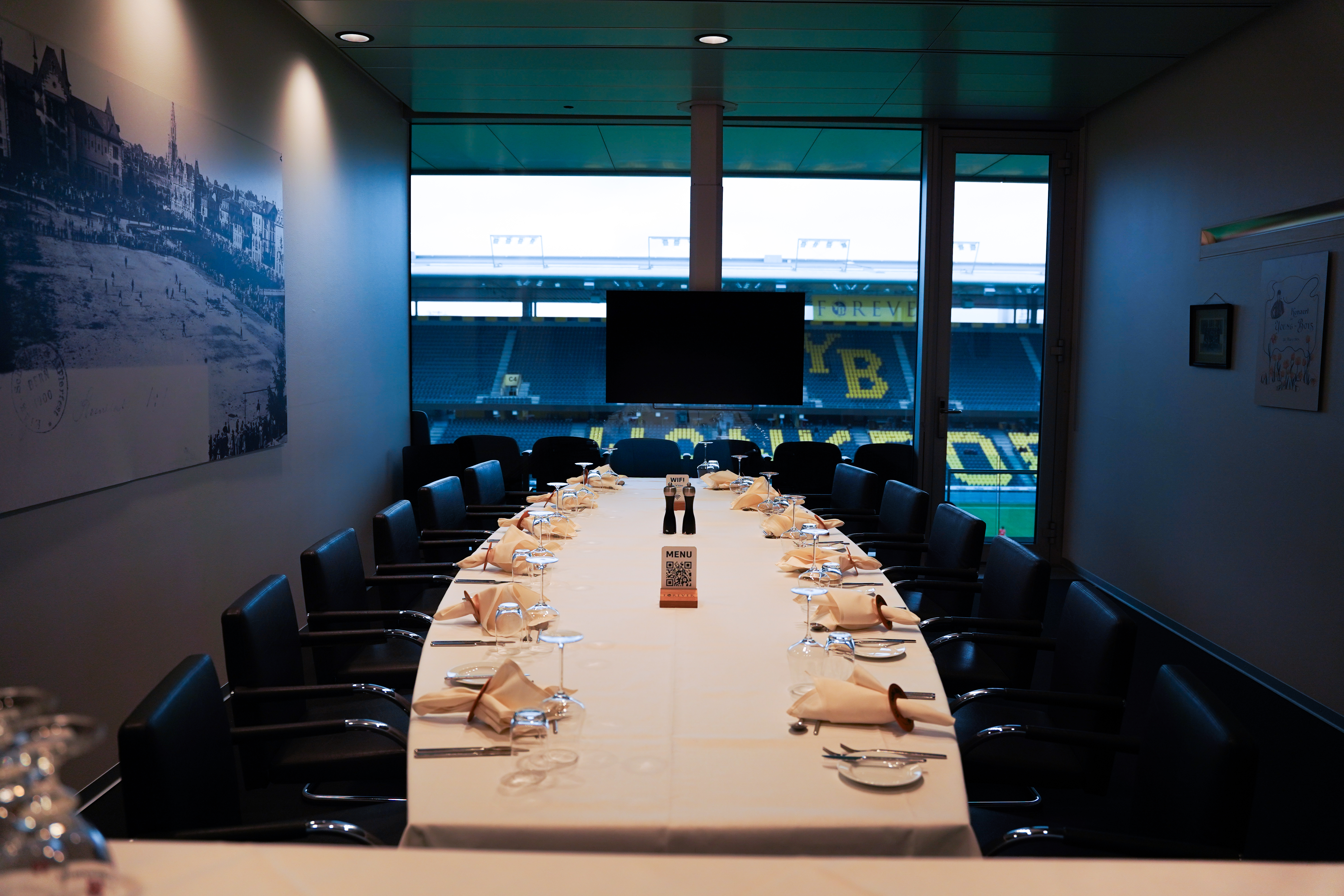 Die 1898 Lounge mit bestem Blick auf den Stadionrasen eignet sich hervorragend für Sitzungen, Workshops oder Schulungen bis 12 Personen. Die Lounge ist ausgestattet mit einer Bar mit Kaffeemaschine für die Pausen sowie einem Flatscreen mit Click-Share Anschluss.