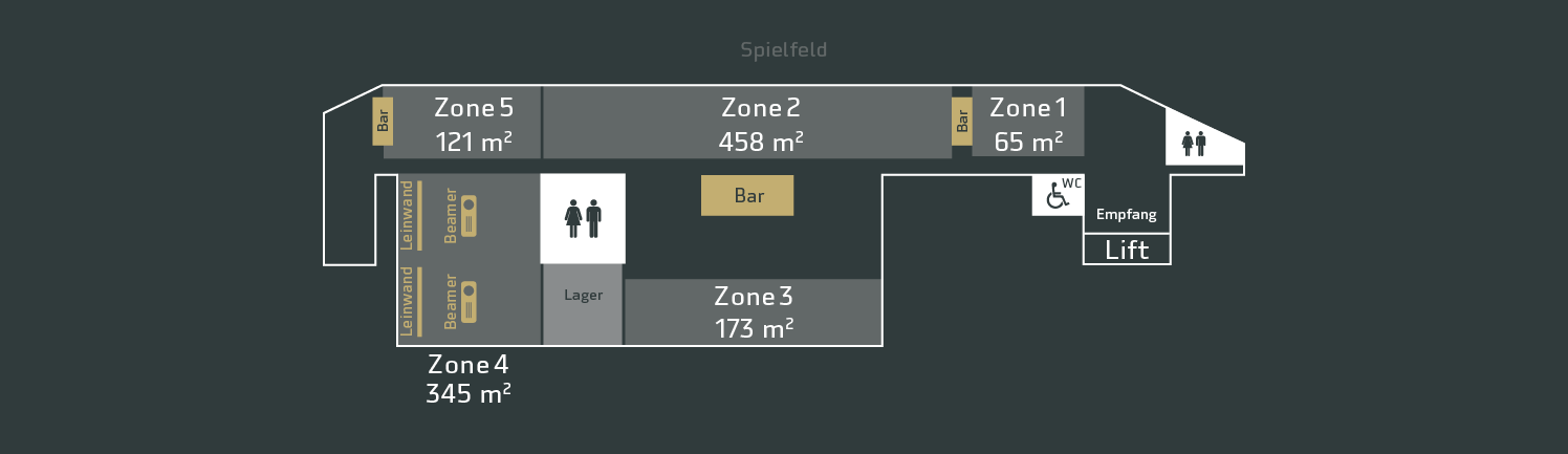 Die fünf Zonen der Champions Lounge, darunter ein einladender Eingangsbereich, eine Seminarfläche für bis zu 320 Personen und eine Bar im britischen Pub-Stil erlauben es, den Raum in verschiedene Themenwelten einzuteilen. Es stehen zwei fixe Beamer inklusive Leinwände bereit, wodurch zweisprachige Präsentationen möglich sind. Im ganzen Raum sind zudem 40 Screens angebracht, auf denen Präsentationen abgespielt werden können.