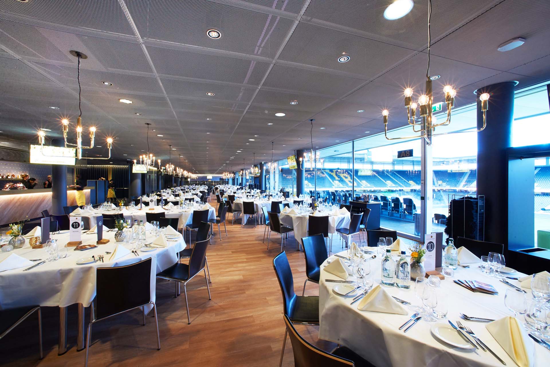 Die Champions Lounge ist der grösste VIP-Bereich und bietet eine Fläche von über 1‘900m². Der einmalige Ausblick ins Stadioninnere bietet einen edlen Rahmen für Ihren Event. Es ist jederzeit möglich auf die Tribüne zu gelangen und die einmalige Stadionatmosphäre zu geniessen. Unvergessliche Bankette für bis zu 950 Personen sind in der Champions Lounge möglich. Die Champions Lounge ist der ideale Raum, um Seminare und Bankette zu kombinieren.