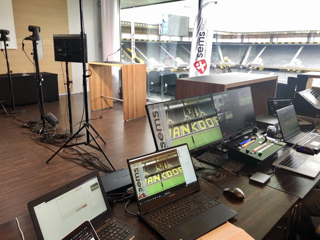 Vermehrt setzen Firmen auf virtuelle Events, um mit ihren Mitarbeitenden und Kund:innen in Kontakt zu bleiben. Wo sich im Stadion Wankdorf normalerweise Fussballbegeisterte aus Wirtschaft, Kultur, Politik und Sport während Fussballspielen treffen, richten wir Ihnen Ihr persönliches Studio ein. In unseren grosszügigen Räumlichkeiten können Livestreams wie auch hybride Events in bester Qualität, mit perfektem Ton, synchronisierten Slides und professioneller Simultanübersetzung national und international transportiert werden. Mit unserer Multimedia-spezialisierten Partnerin Newsroom Communication AG bringen wir die Emotionen zu Ihrem Publikum.