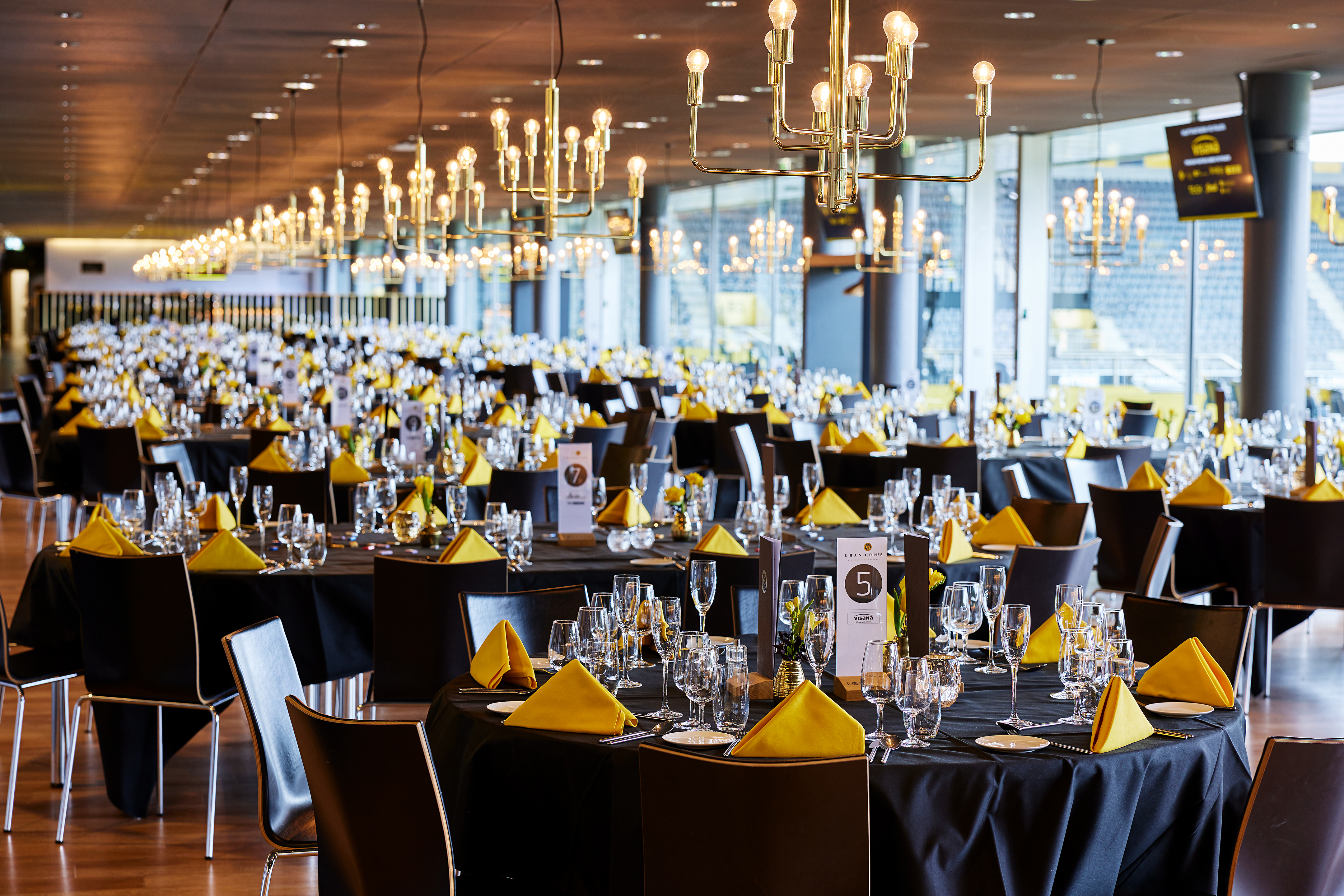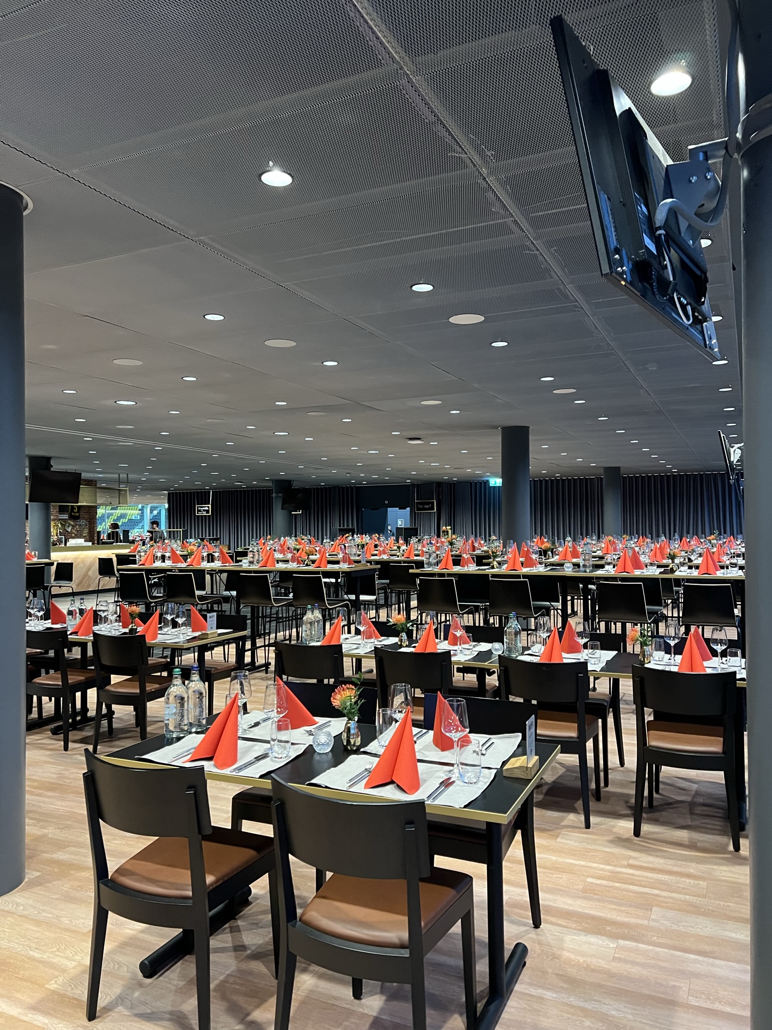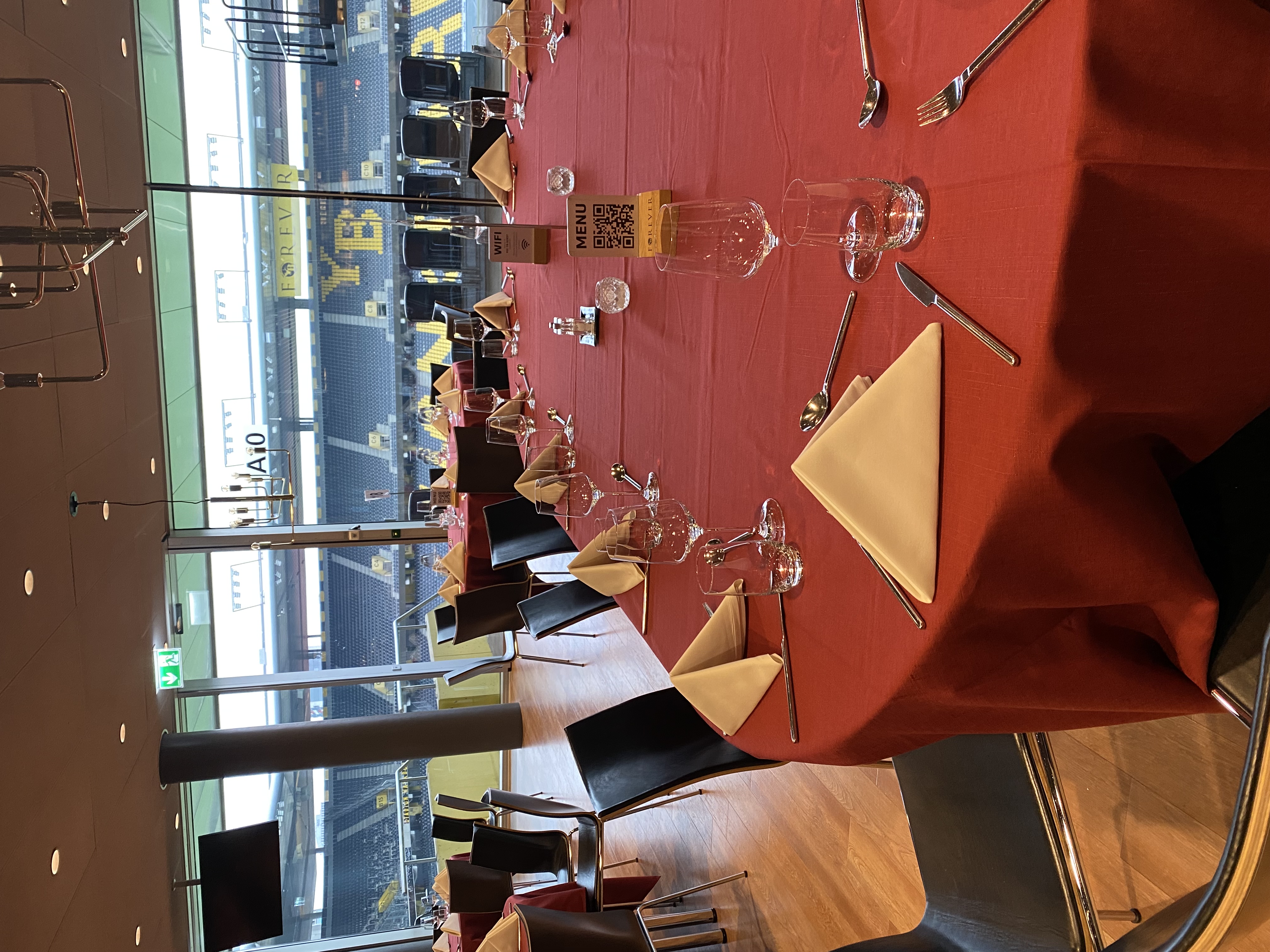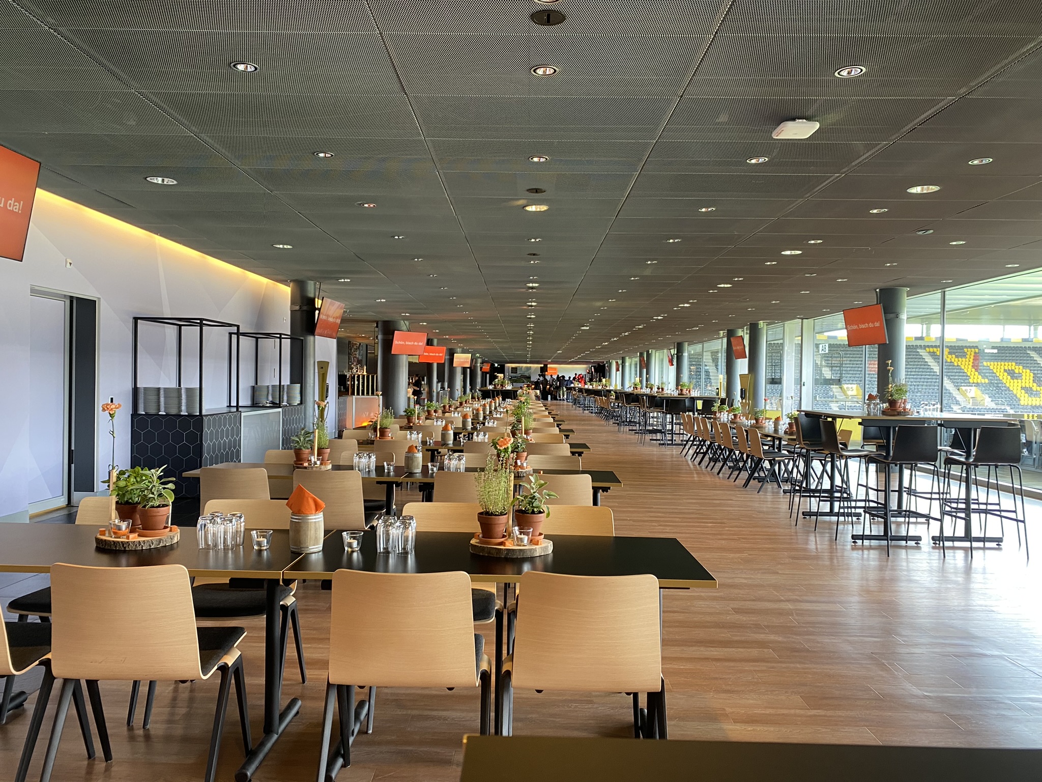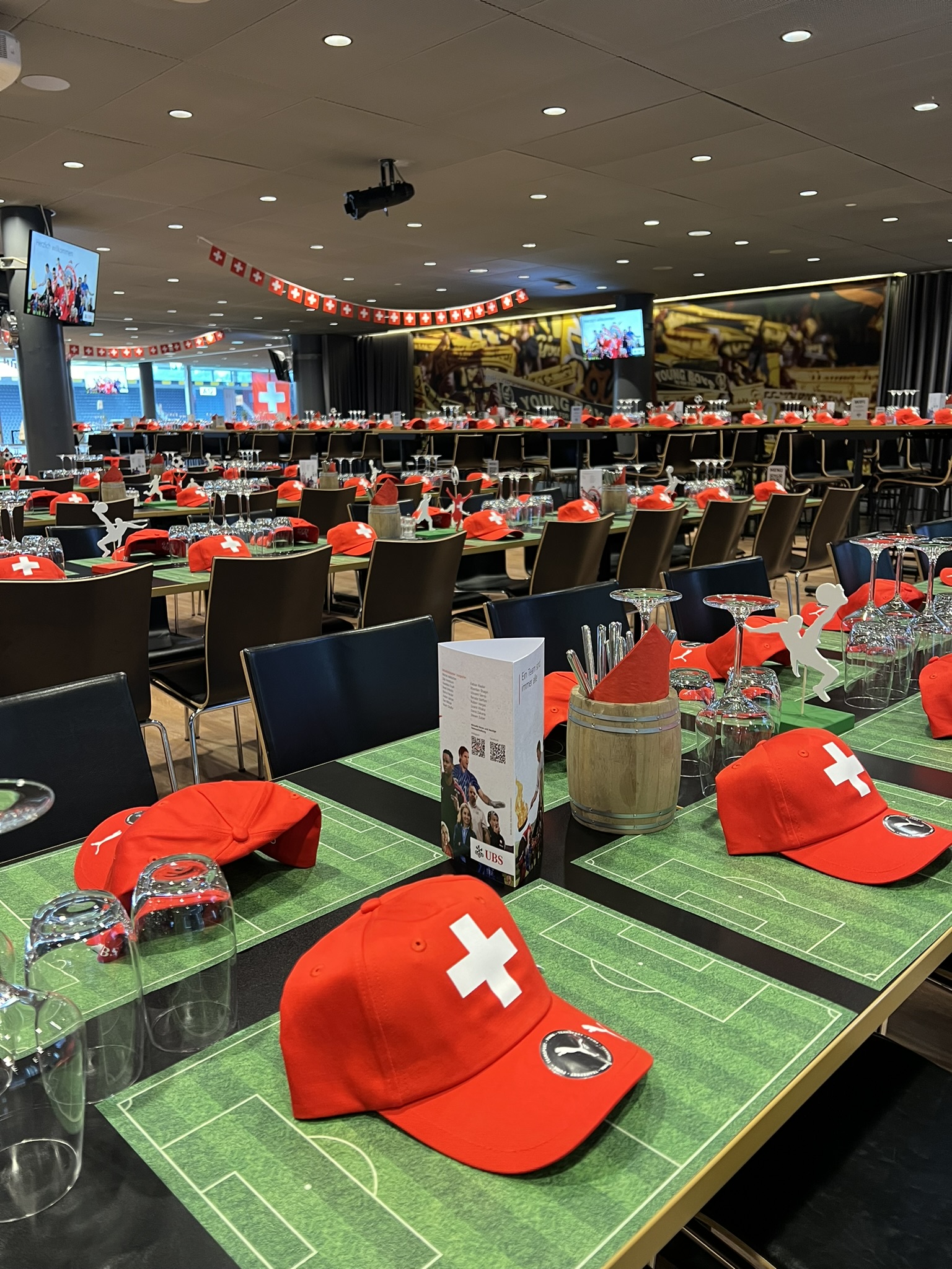 Die Tischdekoration ist ein entscheidendes Element bei der Gestaltung eines Events. Ob rote Tischtücher für festliche Anlässe, schwarze für moderne Eleganz, klassische weisse Tischtücher für zeitlose Schönheit oder lockere Tischsets mit Servietten in der Firmenfarbe als Akzent – für jeden Event gibt es die perfekte Kombination. Auch die Tischform, ob rund, oval, eckig, tief oder hoch, beeinflusst die Atmosphäre im Raum. Mit der richtigen Wahl wird jeder Event zu einem unvergesslichen Erlebnis. All dies bieten wir Ihnen gerne bei uns im Stadion Wankdorf – gerne beraten wir Sie persönlich.
