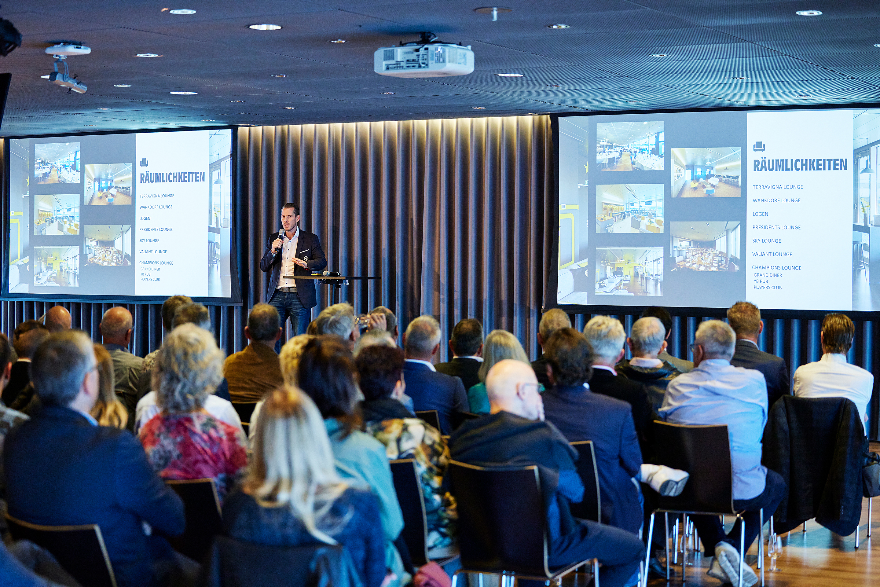 Nach der Eröffnung durch Sascha Funk, Leiter des Wirtschaftsraum Bern, und dem Grusswort von Gemeinderat Reto Nause, stellte YB-CEO Wanja Greuel dein Verein aus Unternehmersicht vor.