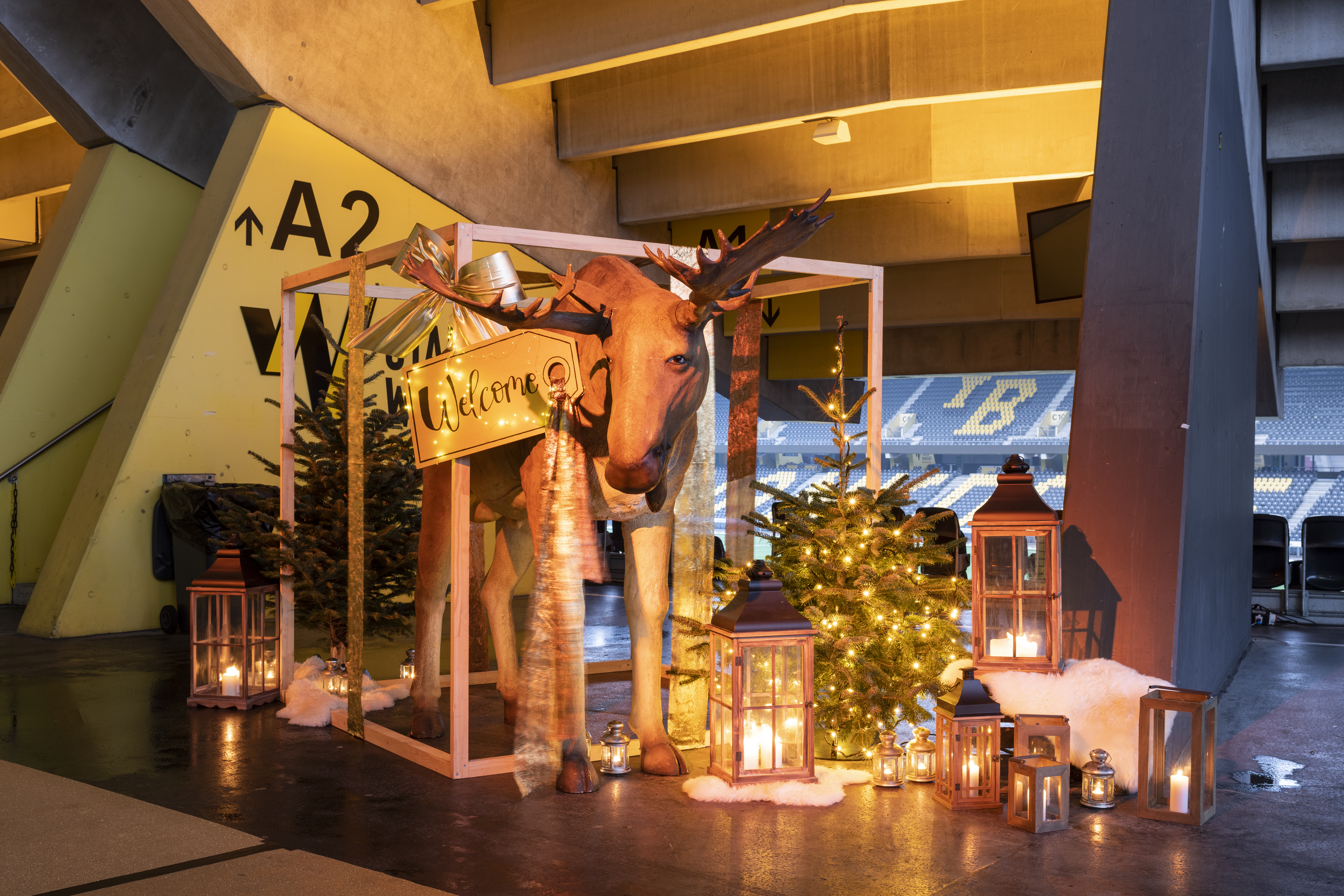Am 16. Dezember 2022 verwandelte sich unser Stadion Umgang in ein Wintermärchen. Die aufwändige Dekoration mit vielen Lichtern, Holz-Häuschen, Laternen, Tannenbäumen und sogar einem Elch wurde in einem Tag aufgebaut und unser Umgang war fast nicht mehr wiederzuerkennen. Am Abend begrüssten wir 1’100 Mitarbeitende zu ihrem Weihnachtfest bei uns im Stadion Wankdorf.