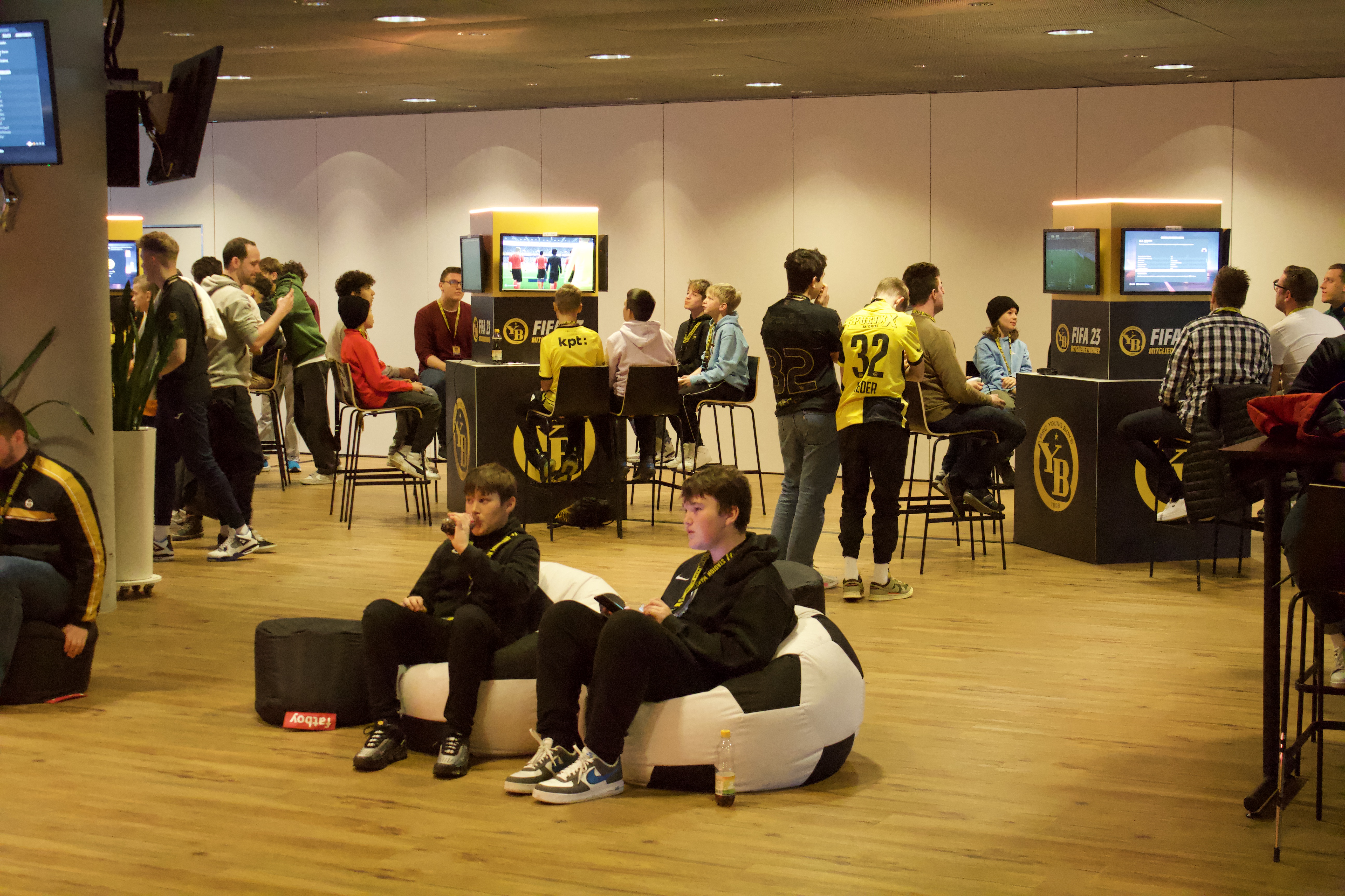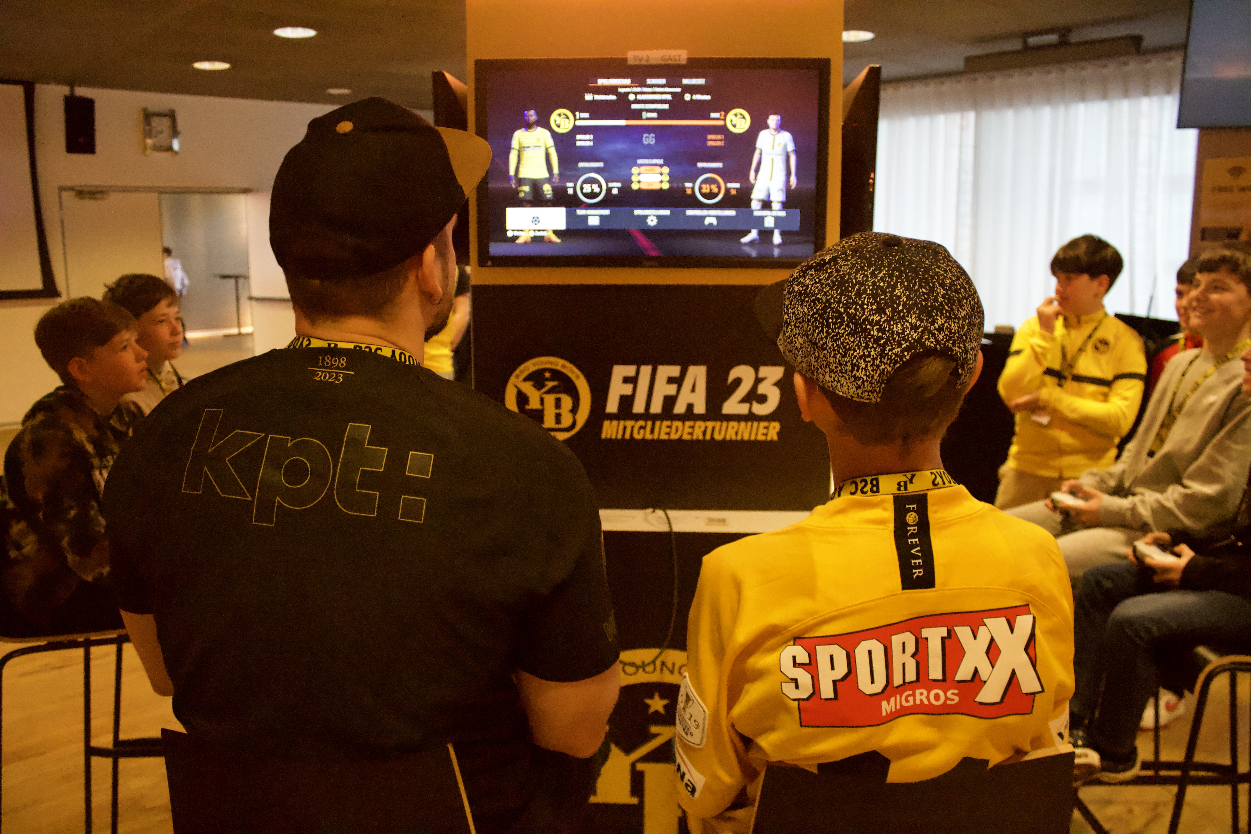 Das zweite FIFA-Mitgliederturnier fand am Sonntag, 26.03.2023 in unserer Valiant Lounge statt und war ein voller Erfolg. Rund 150 YB-Mitglieder, die grösstenteils in ihren Match-Outfits erschienen sind, konnten in gelb-schwarzem Ambiente und äusserst respektvoller Atmosphäre ihrer Gaming-Leidenschaft frönen.