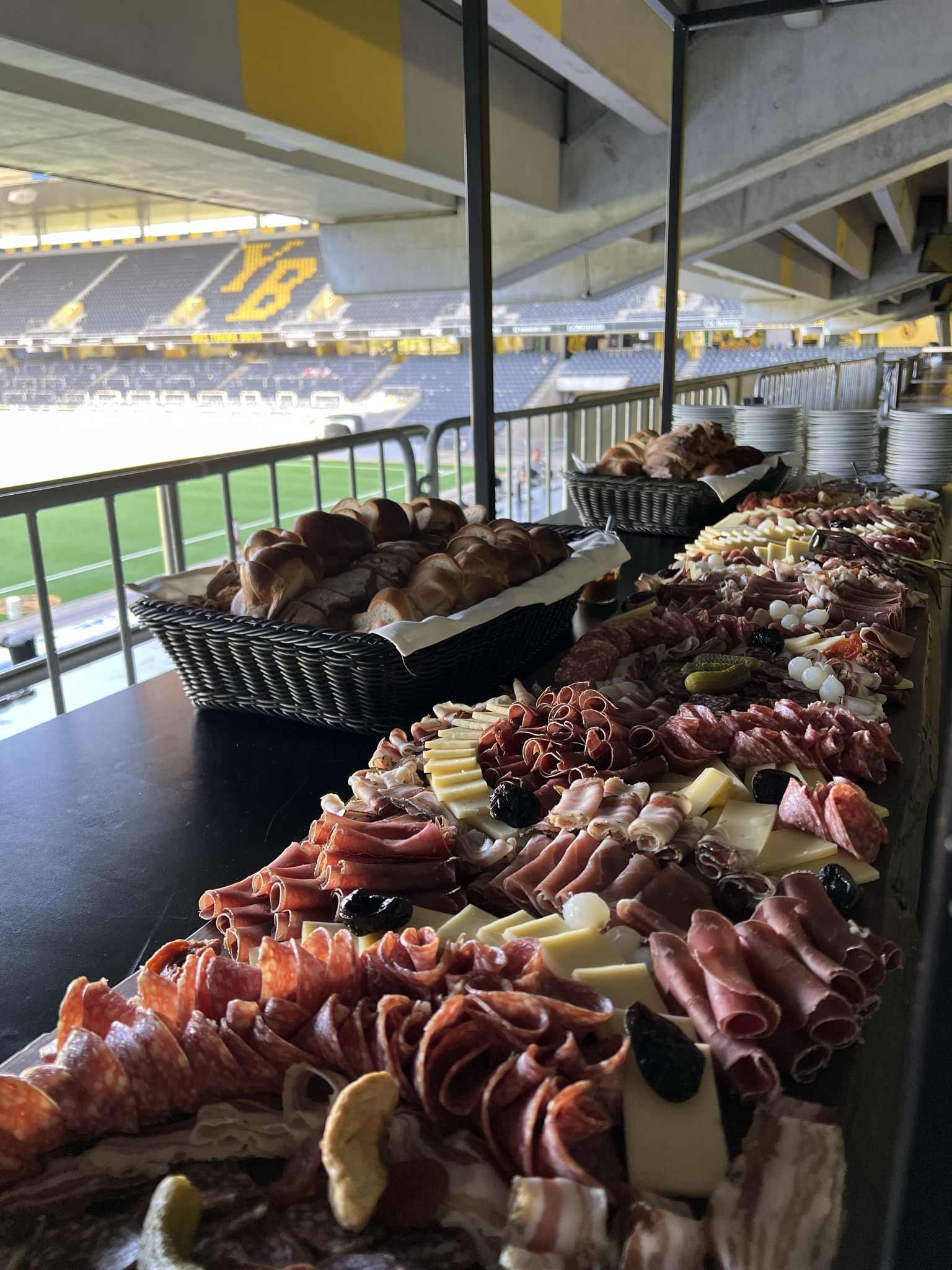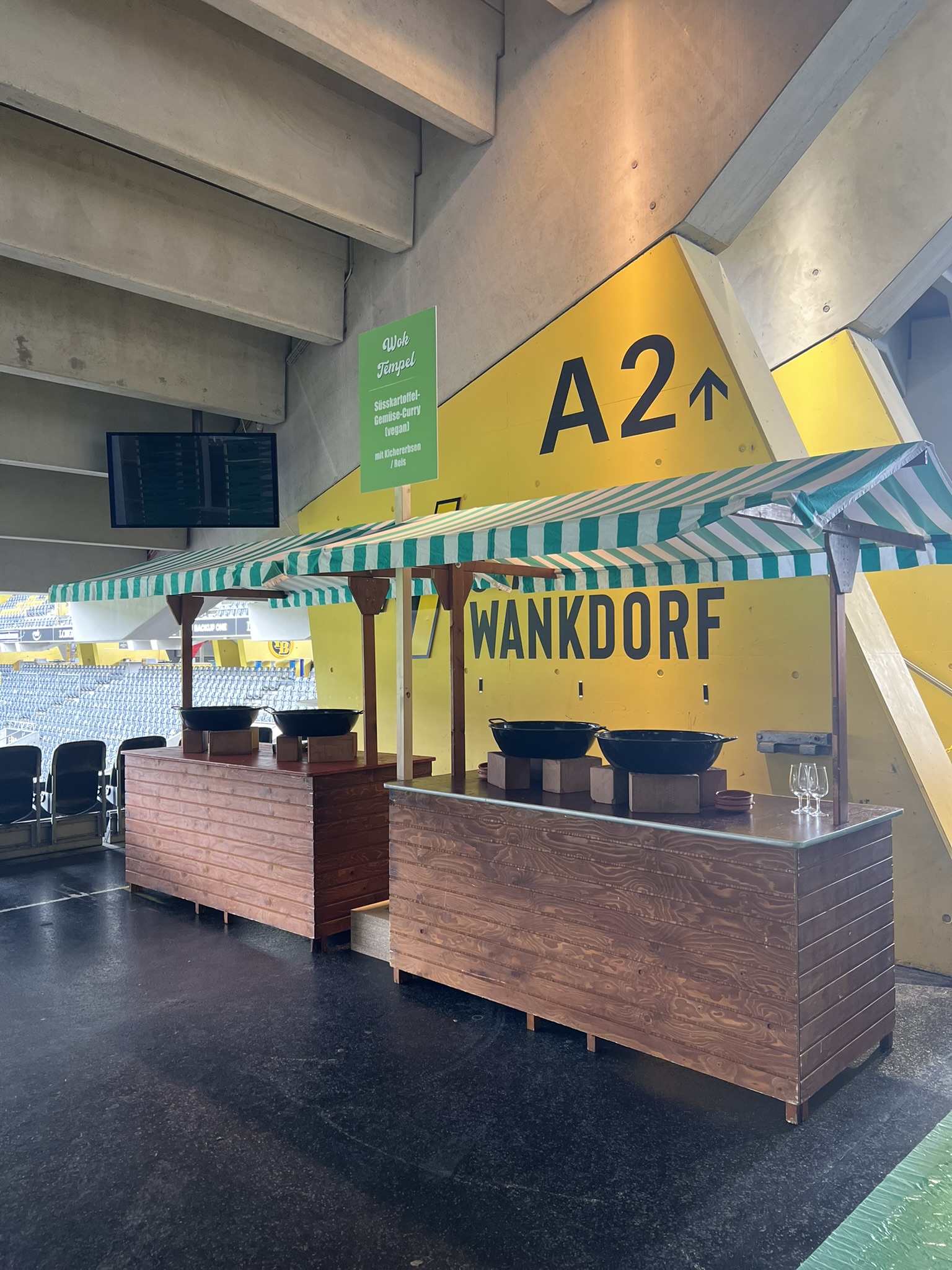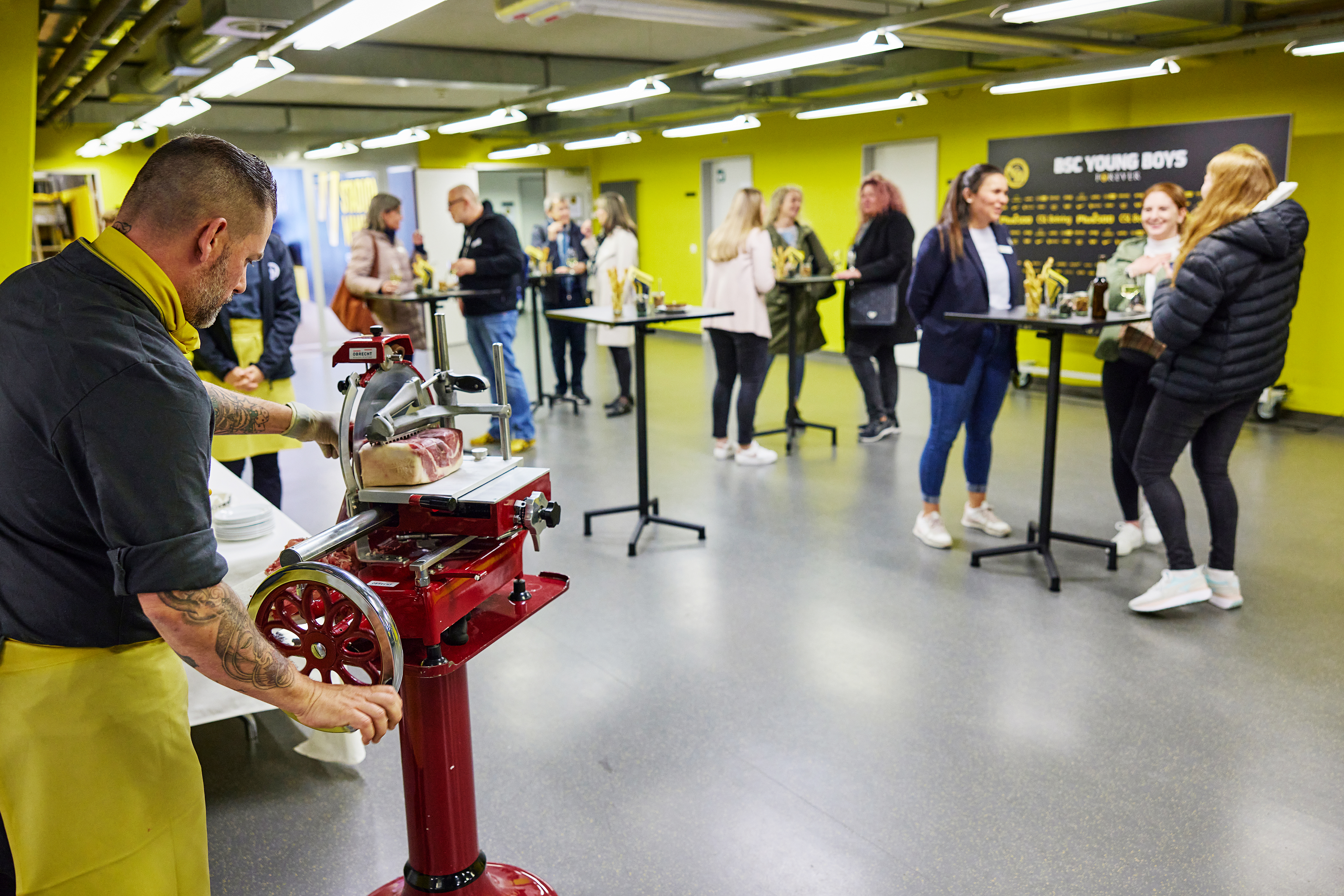 Anlässlich unseres eigenen Events reisten wir gemeinsam mit Events- und Kongresskunden kulinarisch durchs Stadion Wankdorf. Angefangen mit dem Apéro in der Mixed Zone, ging es weiter in den Stadion Umgang, wo die Vorspeise serviert wurde. Anschliessend wurde in der Champions Lounge die YBolognese (Fleisch und Vegi) selbstständig gekocht. Zum Abschluss ging es in den vierten Stock in die Presidents Lounge. Dort gab es feine Waffeln mit einem gemütlichen Schlummertrunk.