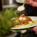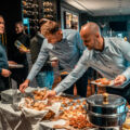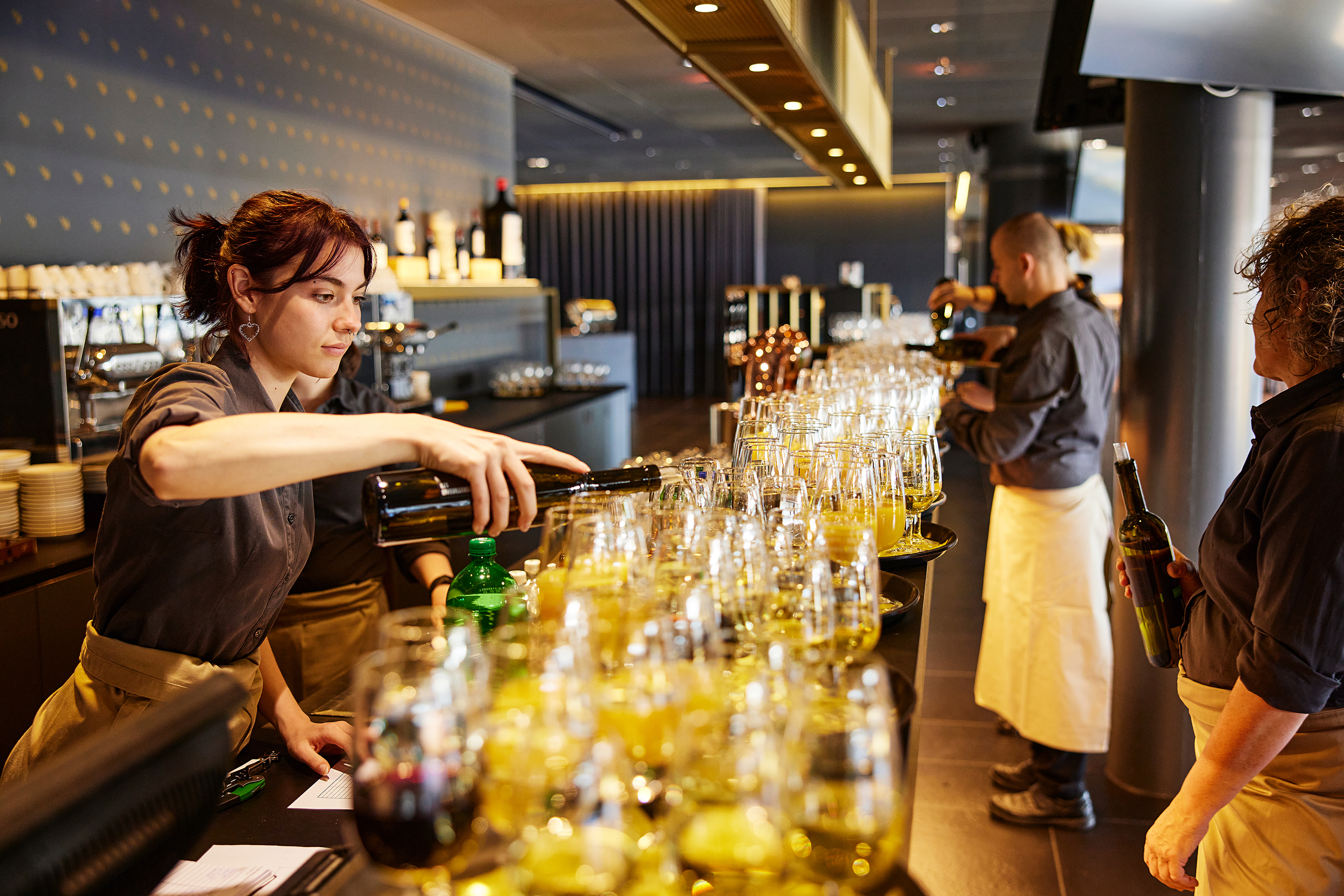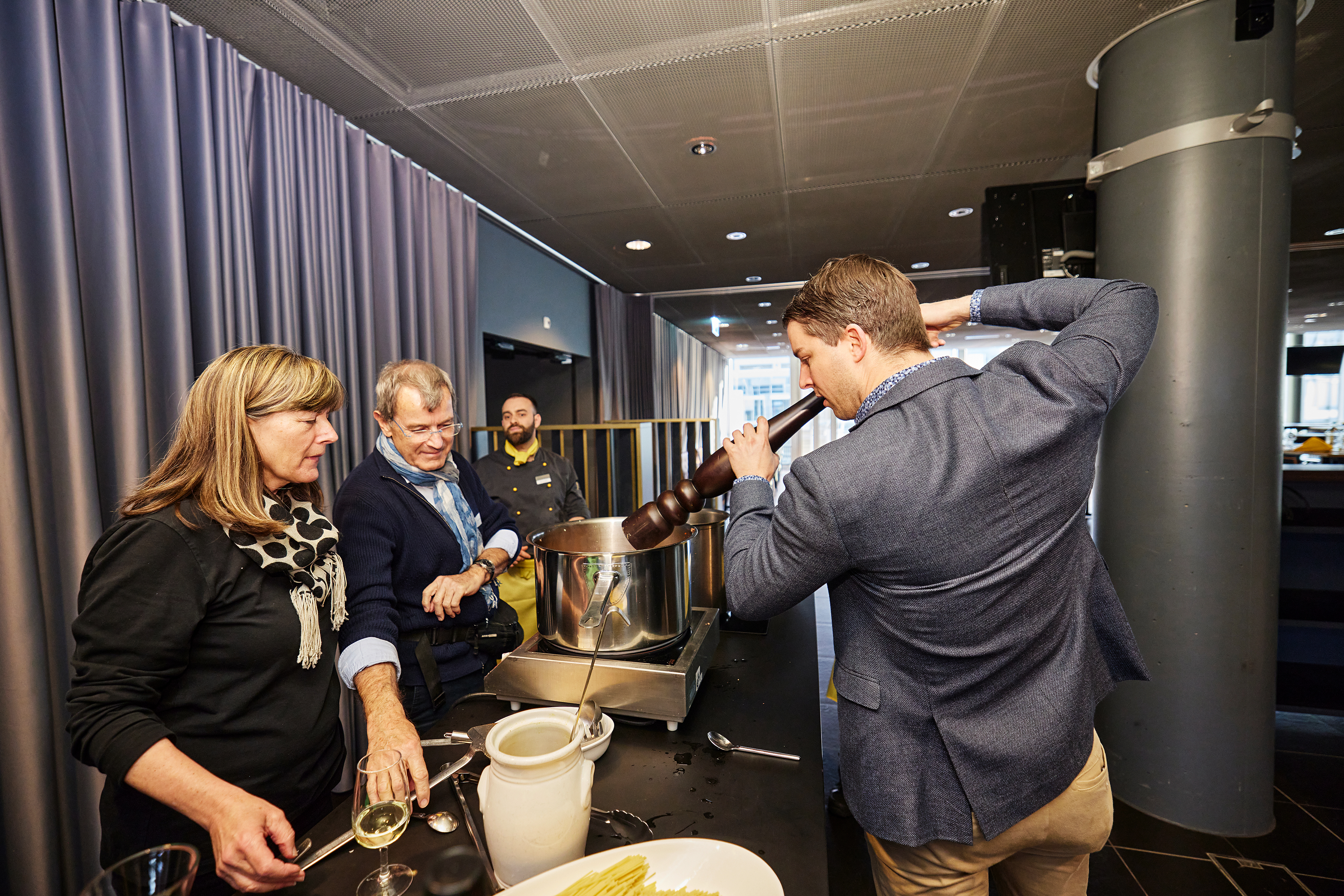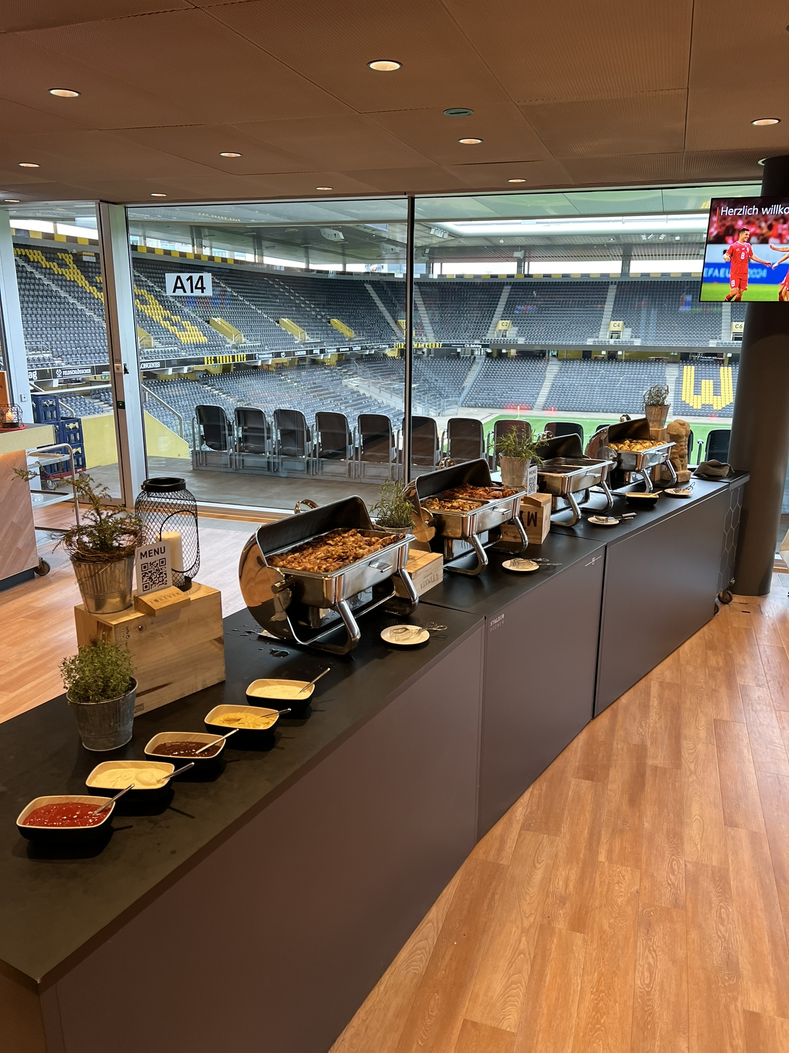 Anlässlich unseres eigenen Events reisten wir gemeinsam mit Events- und Kongresskunden kulinarisch durchs Stadion Wankdorf. Angefangen mit dem Apéro in der Mixed Zone, ging es weiter in den Stadion Umgang, wo die Vorspeise serviert wurde. Anschliessend wurde in der Champions Lounge die YBolognese (Fleisch und Vegi) selbstständig gekocht. Zum Abschluss ging es in den vierten Stock in die Presidents Lounge. Dort gab es feine Waffeln mit einem gemütlichen Schlummertrunk.
