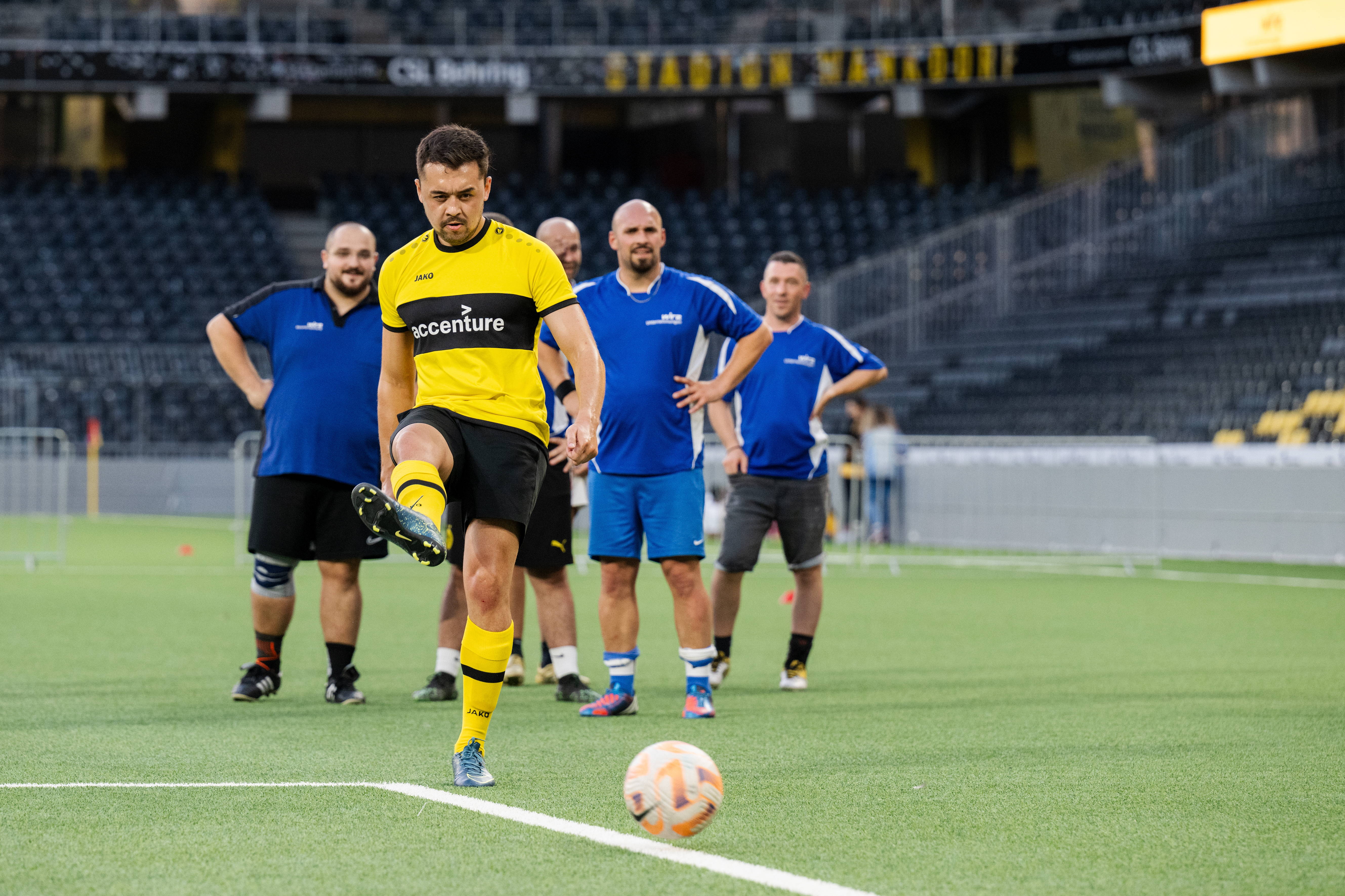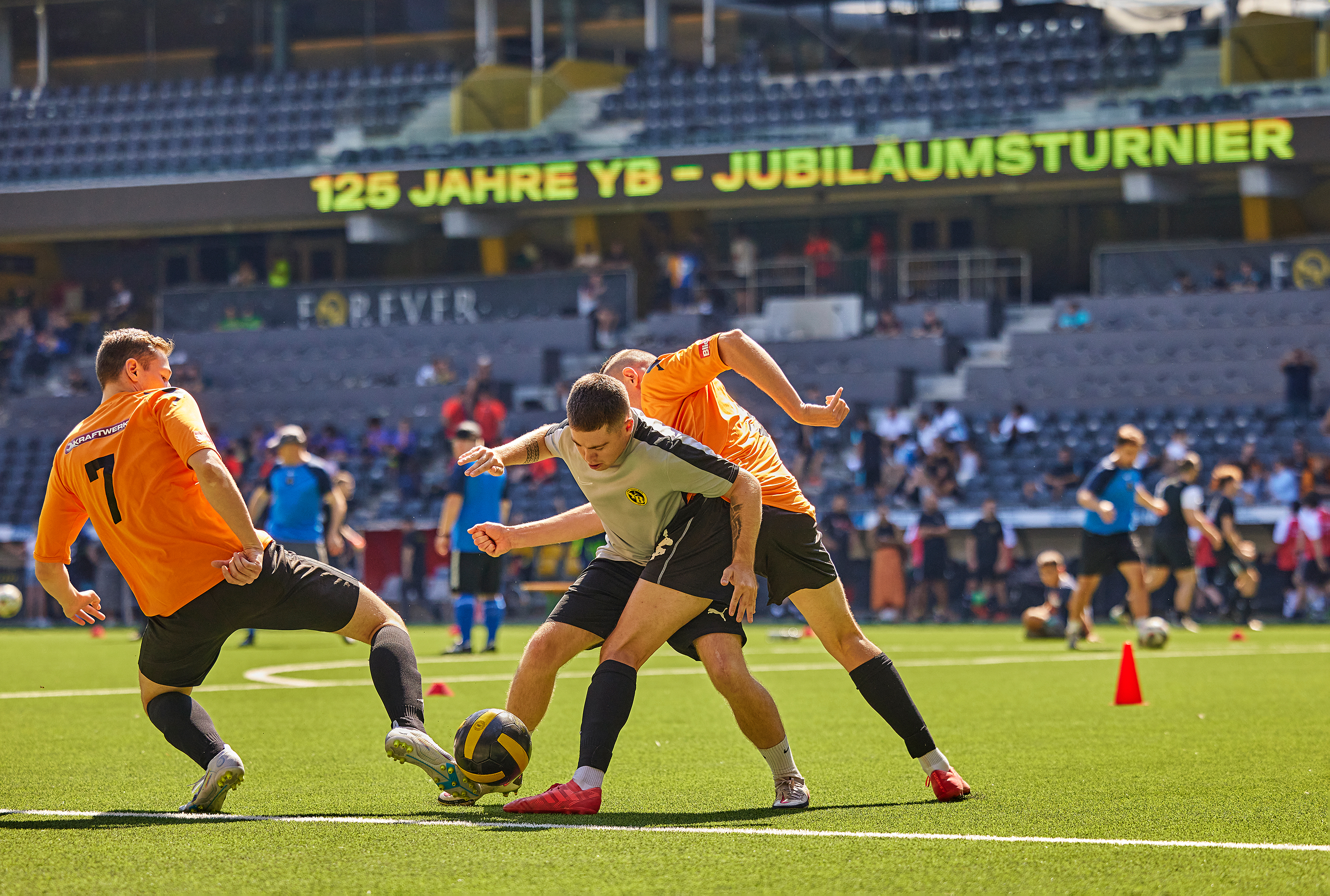 Am Sonntag, 10. September 2023 fand im Stadion Wankdorf das YB-Jubiläums-Grümpelturnier statt. Bei schönstem Sommerwetter und bester Stimmung traten über 600 YB-Fans in 64 Teams auf vier Spielfeldern gegeneinander an. YB-Mitglieder hatten die Möglichkeit Teams anzumelden – die 64 Startplätze waren innert Minuten vergeben. Wir bedanken uns bei allen Spieler:innen für das faire Verhalten. In den 128 Spielen musste nur eine gelbe Karte gezeigt werden, ernsthafte Verletzungen gab es keine. Merci!
