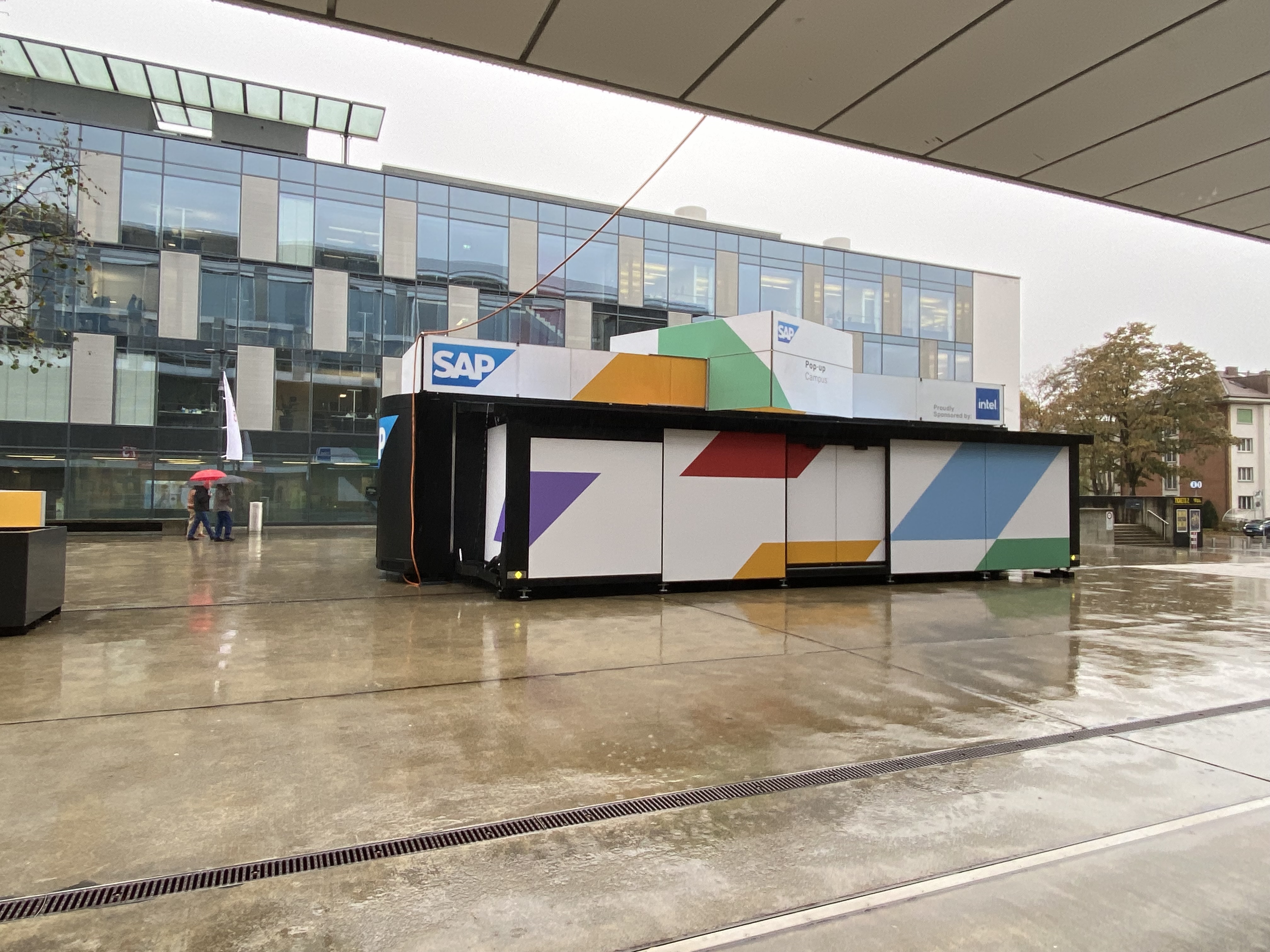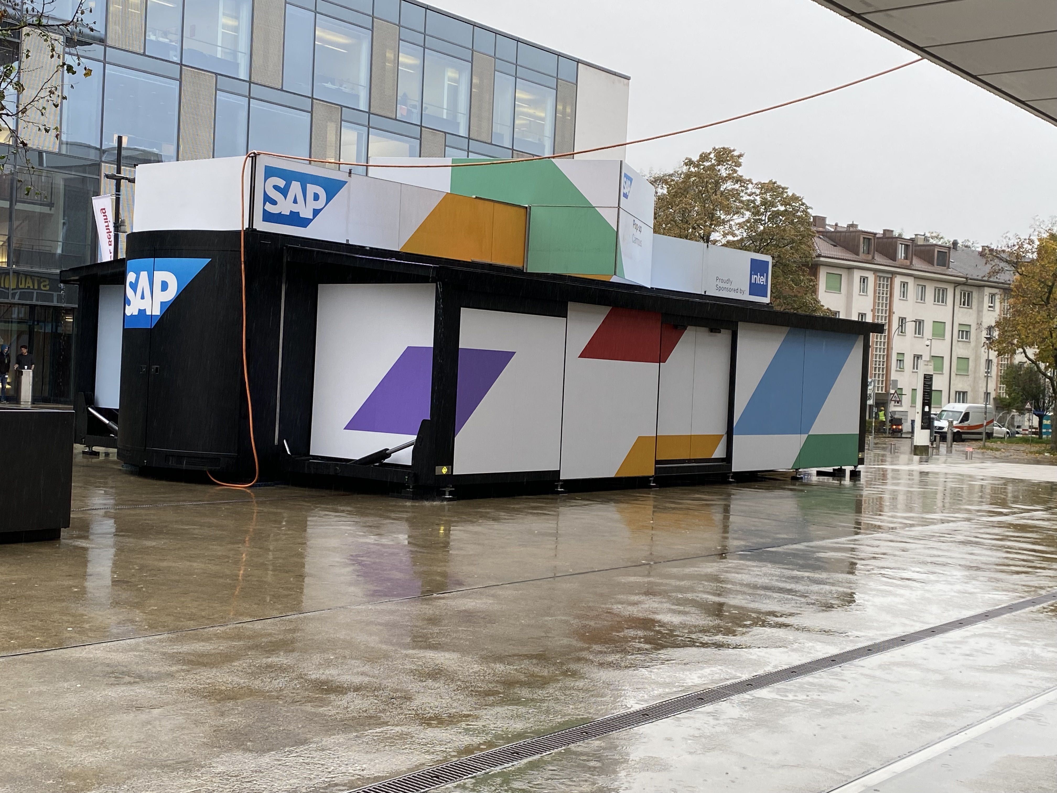 Der SAP Truck hat Kunden mit innovativen Präsentationen und Workshops auf dem Quartierplatz begeistert. Der mobile LKW kann flexibel umgebaut werden und bietet einen Innenbereich für 180 Grad Screen Präsentationen und interaktive Workshops. Kunden konnten in eine virtuelle Welt eintauchen und die Produkte und Lösungen von SAP hautnah erleben.