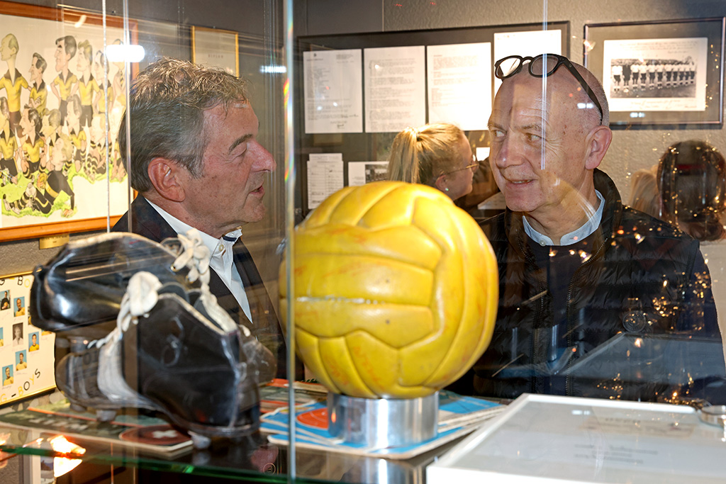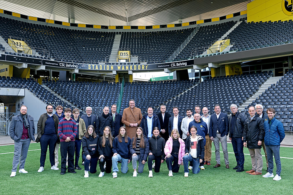 Am 25. April 2024 durften wir eine Delegation des DFB empfangen. Anlass des Besuchs war das historische Jubiläum des Wunders von Bern, das am 4. Juli 1954 im Stadion Wankdorf stattgefunden hat. Die Delegation um DFB-Präsident Bernd Neuendorf erhielt eine ausführliche Führung durch unser Museum und das Stadion. Zu den Höhepunkten des Tages gehörte ein Gespräch mit Hene Minder, dem Balljungen des WM-Finals von 1954. Übernachtet hat die Delegation im historischen Hotel Belvédère in Spiez, das ebenfalls Teil der Geschichte von 1954 ist. Hier logierte die deutsche Fußballnationalmannschaft auf dem Weg zum Weltmeistertitel.
