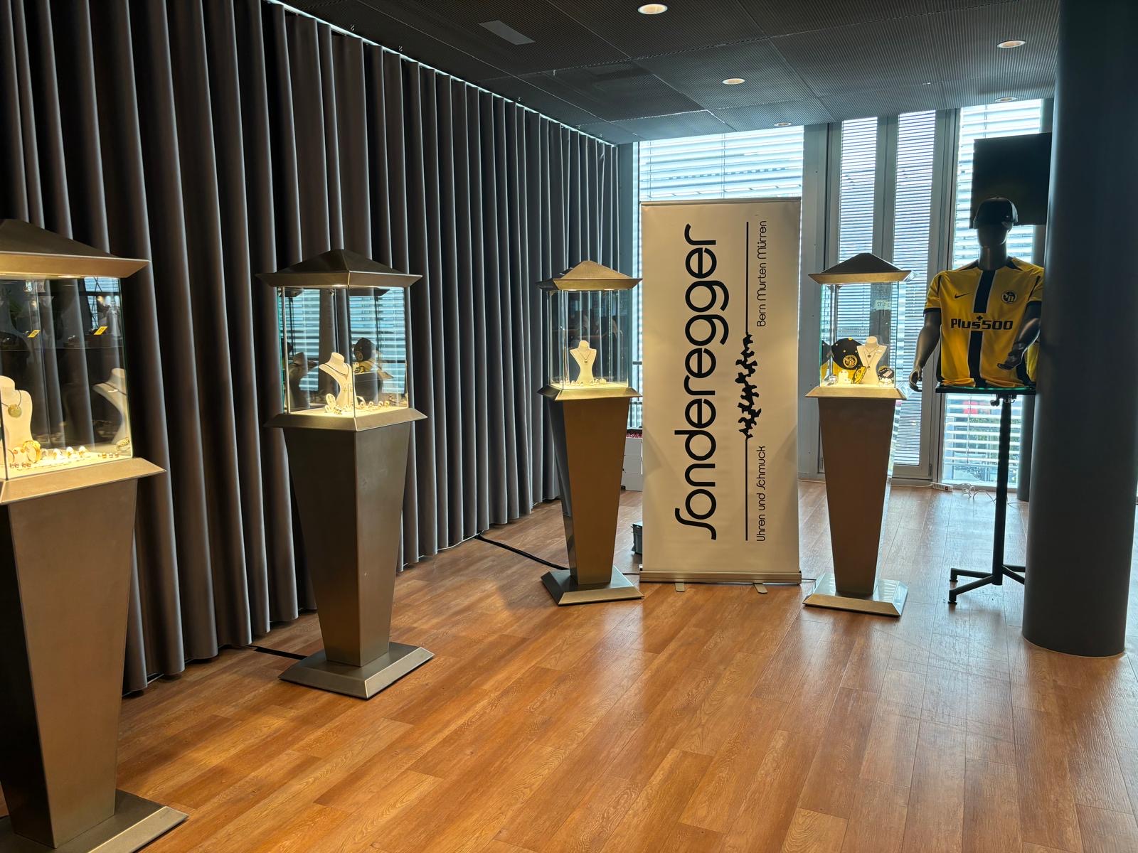 Bei der 100-Jahr-Feier der Soneregger & Co AG vom 30. August 2024 wurden die Erfolge und die Geschichte des Unternehmens gefeiert. Wunderschöne Schmuckstücke konnten bei der Schmuckausstellung in der Champions Lounge bewundern werden. Vier Servicekomiker und ein Zauberer unterhielten die Gäste und sorgten für lustige und verblüffende Momente. Abgerundet wurde der Abend mit dem Talk zwischen Roland Sonderegger und Marco Wölfli, welcher inspirierende Einblicke in seine Karriere gab. Eine grossartige Jubiläumsfeier, welche den Gästen sicher noch lange in Erinnerung bleiben wird.