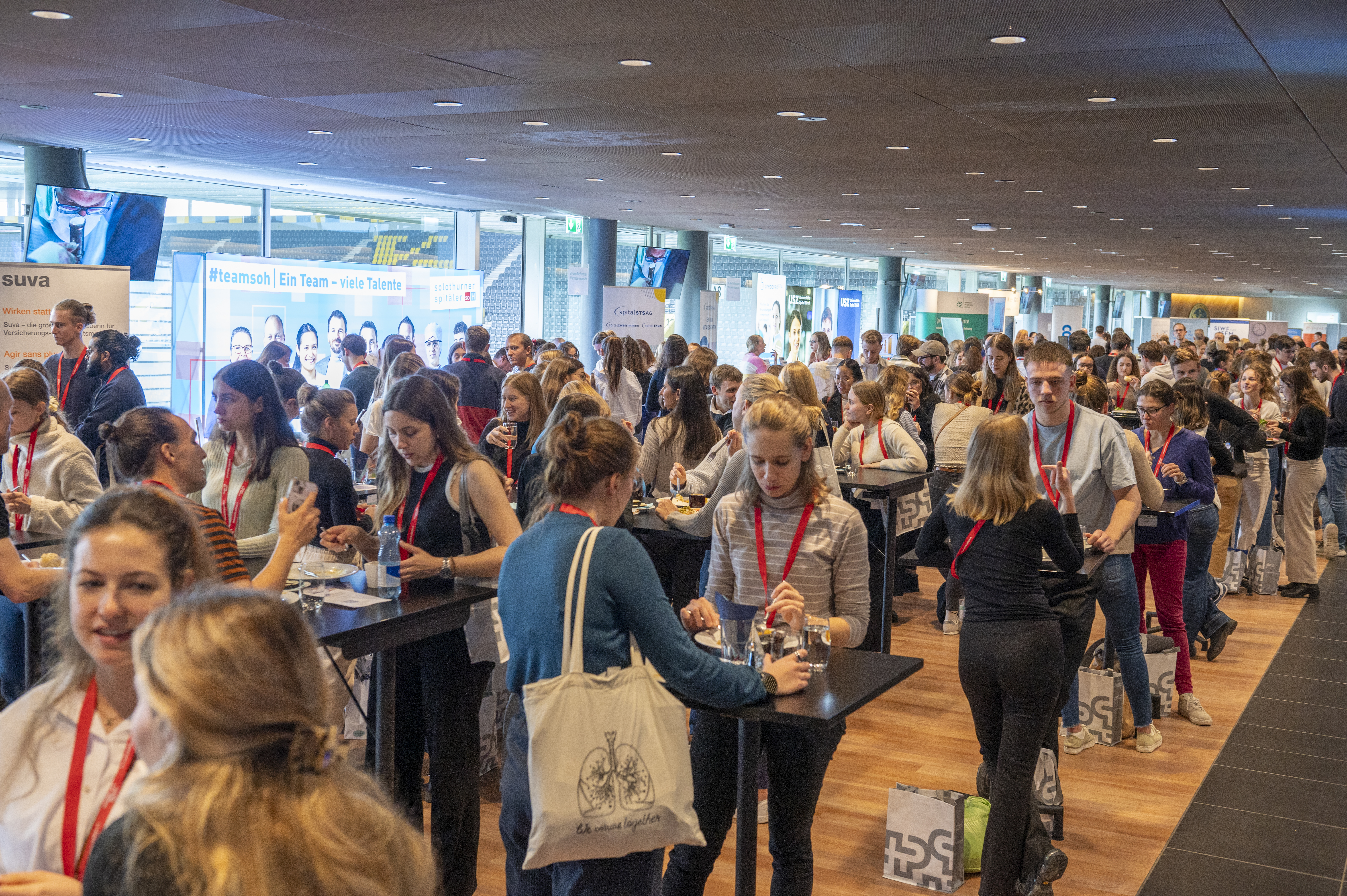 Anfangs November durften wir 500 Teilnehmende beim jährlichen Laufbahnkongress für Medizinstudierende und junge Ärztinnen und Ärzte bei uns im Stadion Wankdorf begrüssen. Bei spannenden Vorträgen in unserer Valiant Lounge und einer Messe mit rund 50 Ständen in der Champions Lounge konnten die Teilnehmenden hilfreiche Inputs für ihre Laufbahnplanung mitnehmen.