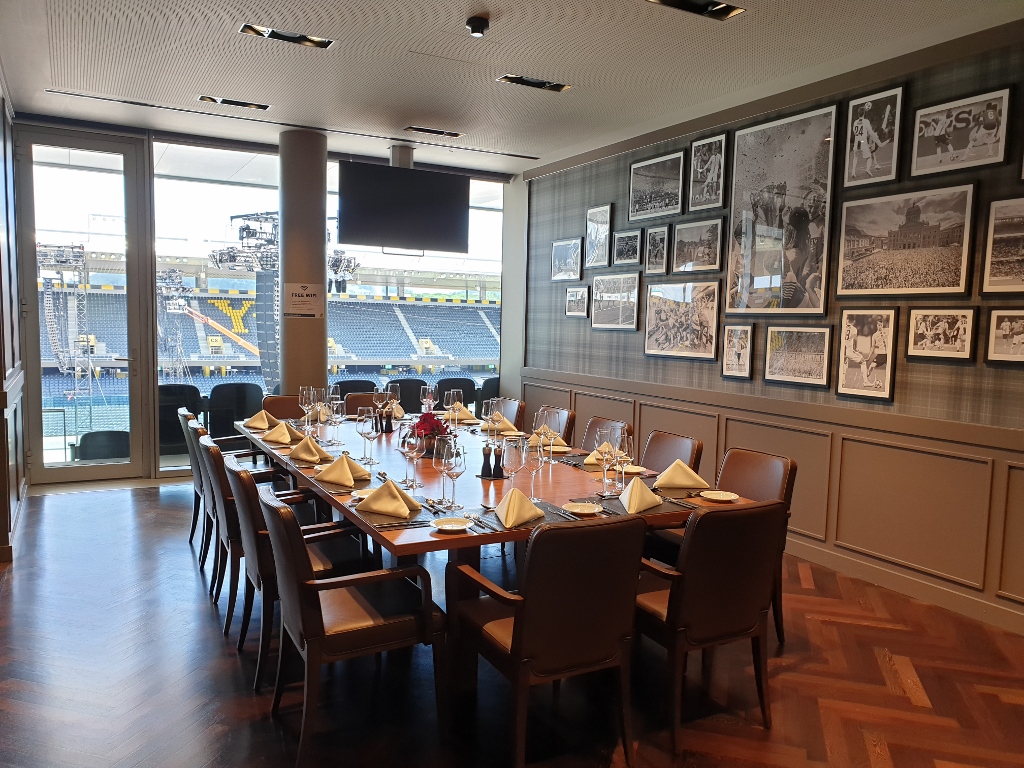 In der Presidents Lounge genossen die knapp 30 Teilnehmenden vor Kick-Off ein reichhaltiges Apéro mit Leckereien aus beiden Ländern. Das Spiel bot anschliessend die optimale Gelegenheit für einen lockeren Austausch in ungezwungenem Rahmen.